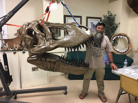 Creating this T-Rex skull was an epic journey! I started with a PVC tubing frame, bending it just right with a heat gun. After wrapping it in burlap and applying fast mache paper mache, I covered it with rock hard putty for that solid finish. The teeth? Crafted from Sculpey polymer clay! It was a labor of love that took about five months, with countless hours spent perfecting details. If you’re interested in temporary museum displays featuring our original sculptures of fossils and creatures, feel free to reach out!